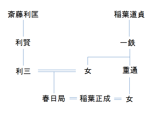 稲葉一鉄という新たな人物が登場した。系図に表すなら次のようになろうか。どうも様々な説があるようで、よく分からないのだが、今回調べた限りの結論がこれだ。