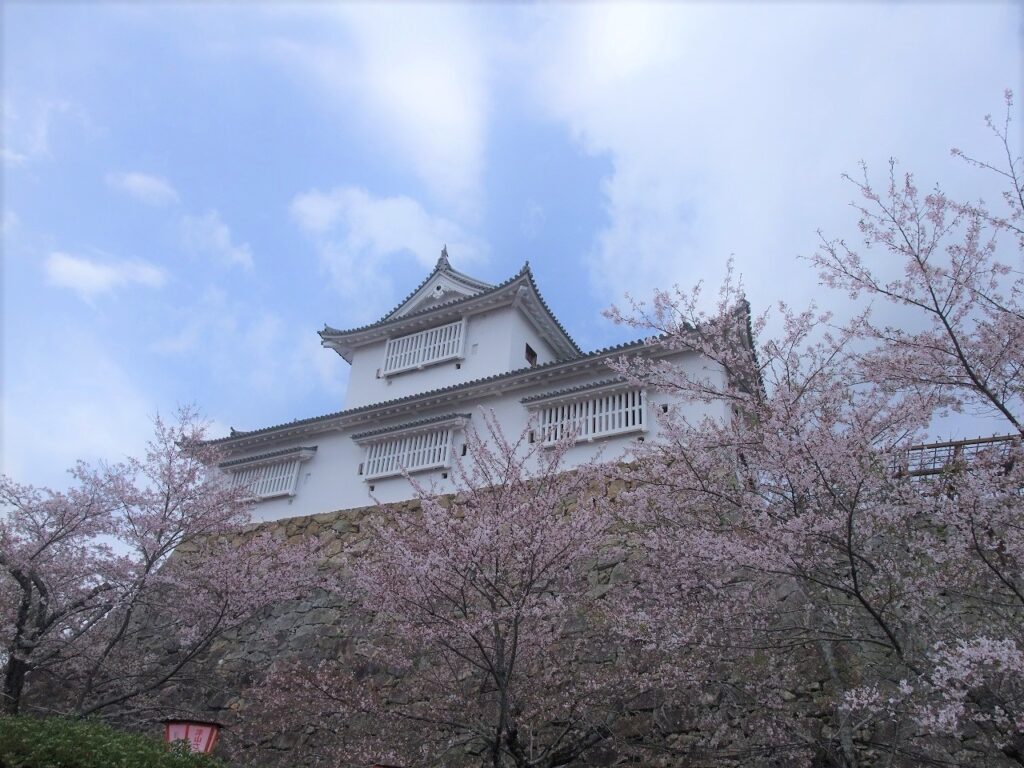 この土日は春の嵐で各地の花見も桜吹雪が舞ったことだろう。少々花冷えのする一日であったが、今日を逃してはならぬと思い津山市の津山城(鶴山公園)の「津山さくらまつり」に出かけた。下の写真は近年復元された備中櫓である。築城400年を記念して2004年(平成16年)に整備された。