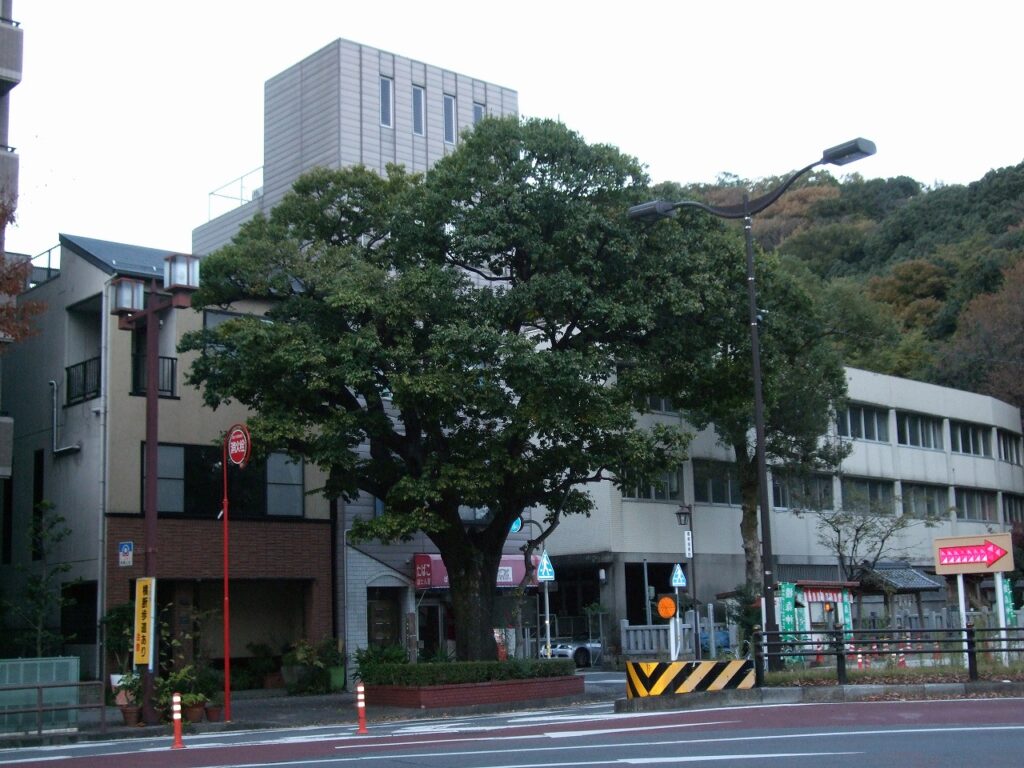 榎は、嘉永五年(一八五二)に枯木となり植えなおされ、明治初年の道路改修工事に際して、橿森神社(かしもりじんじゃ)大門へ移植された。これが現在の若宮町一丁目の榎である。