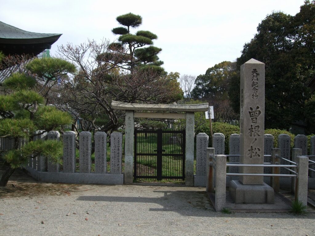 それでも、ここは伝説を楽しむとしよう。菅公御手植えの松が成長して霊松「曽根の松」となったという。下の写真を見ると、天然記念物の表示がある。