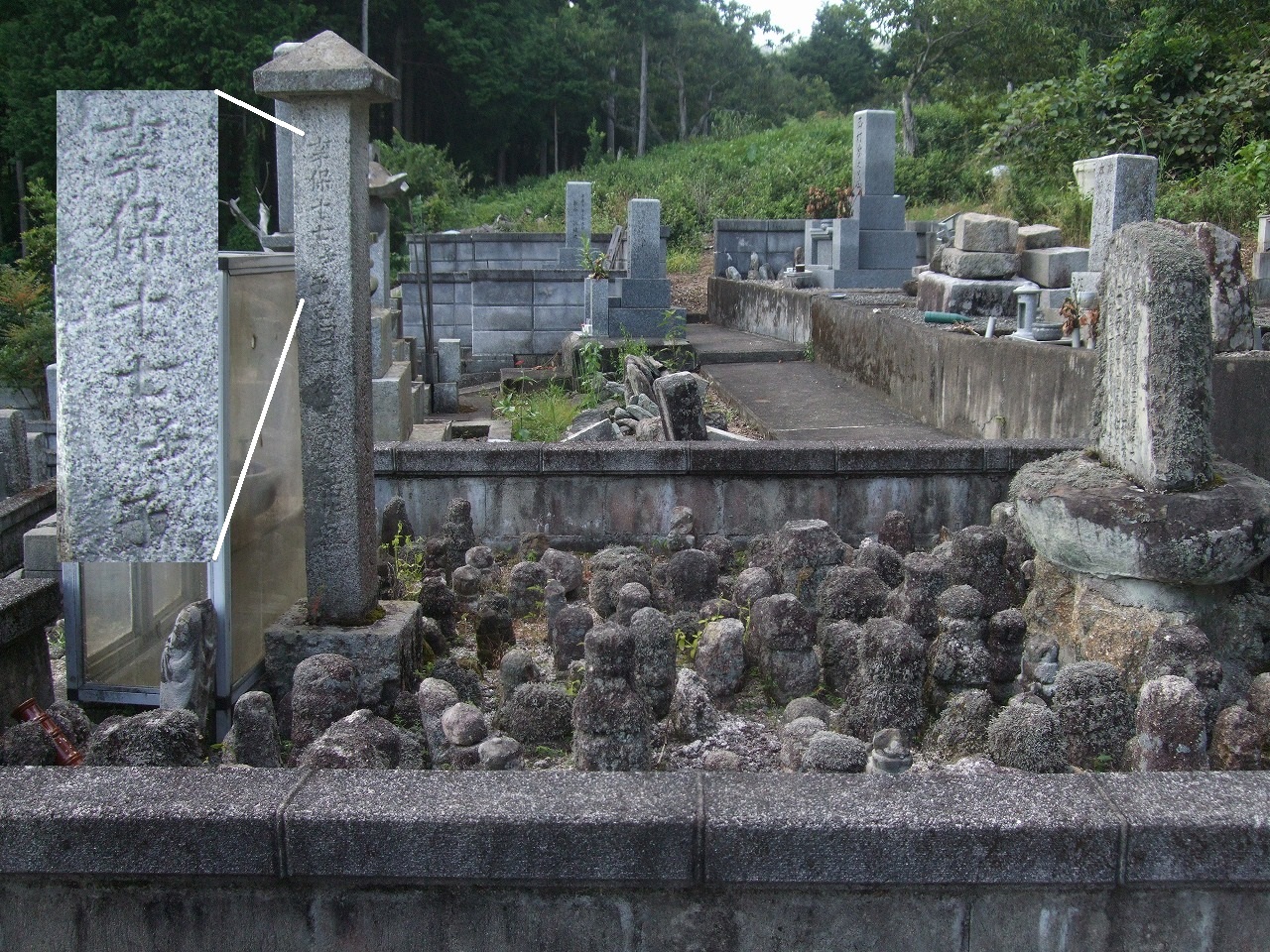 生きのこった村人たちは、この供養塔を建て餓死者の追弔を行った。ここにある小さな五輪塔などは、きちんとした弔いもできず家の近くに葬り、形ばかりの墓石として置いていたのを持ちよったものといわれる。