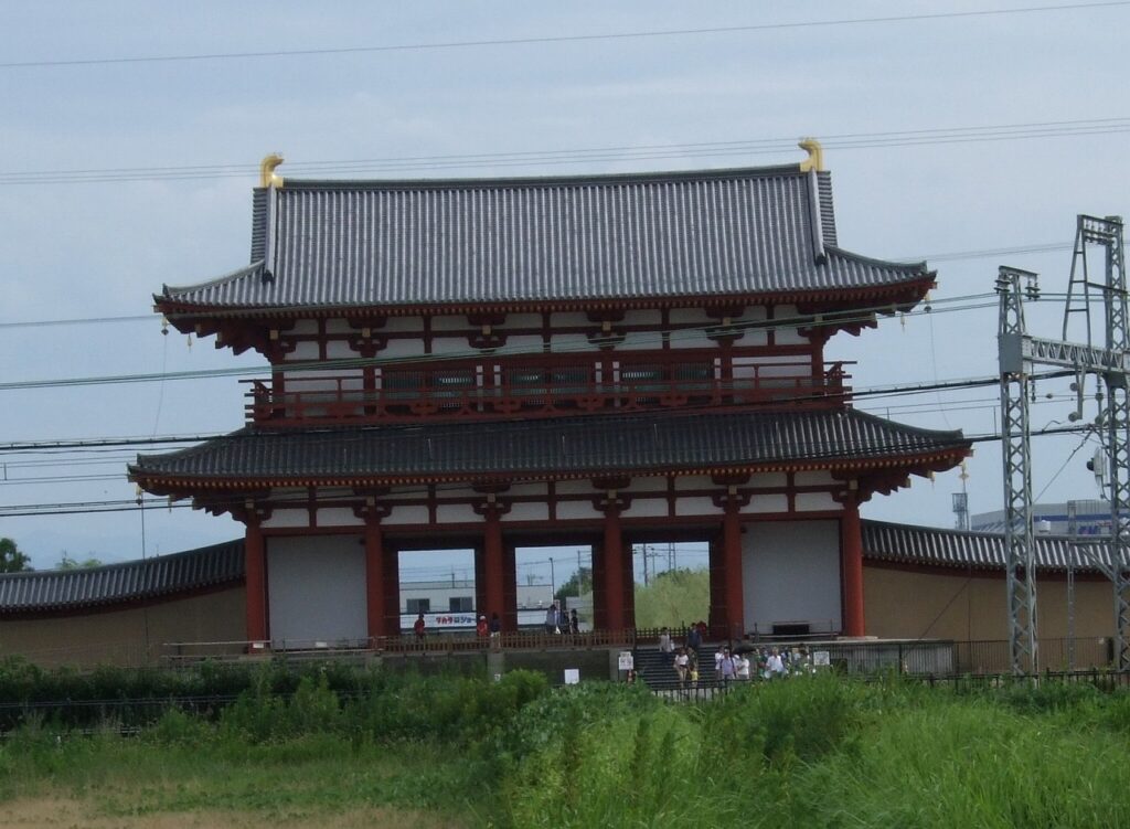 ここでは、基壇を復元整備して、上面に柱の位置を表示しています。基壇の上には、朱雀門のような堂々とした重層の門が建っていたと思われます。往時の威容を想像してみてください。