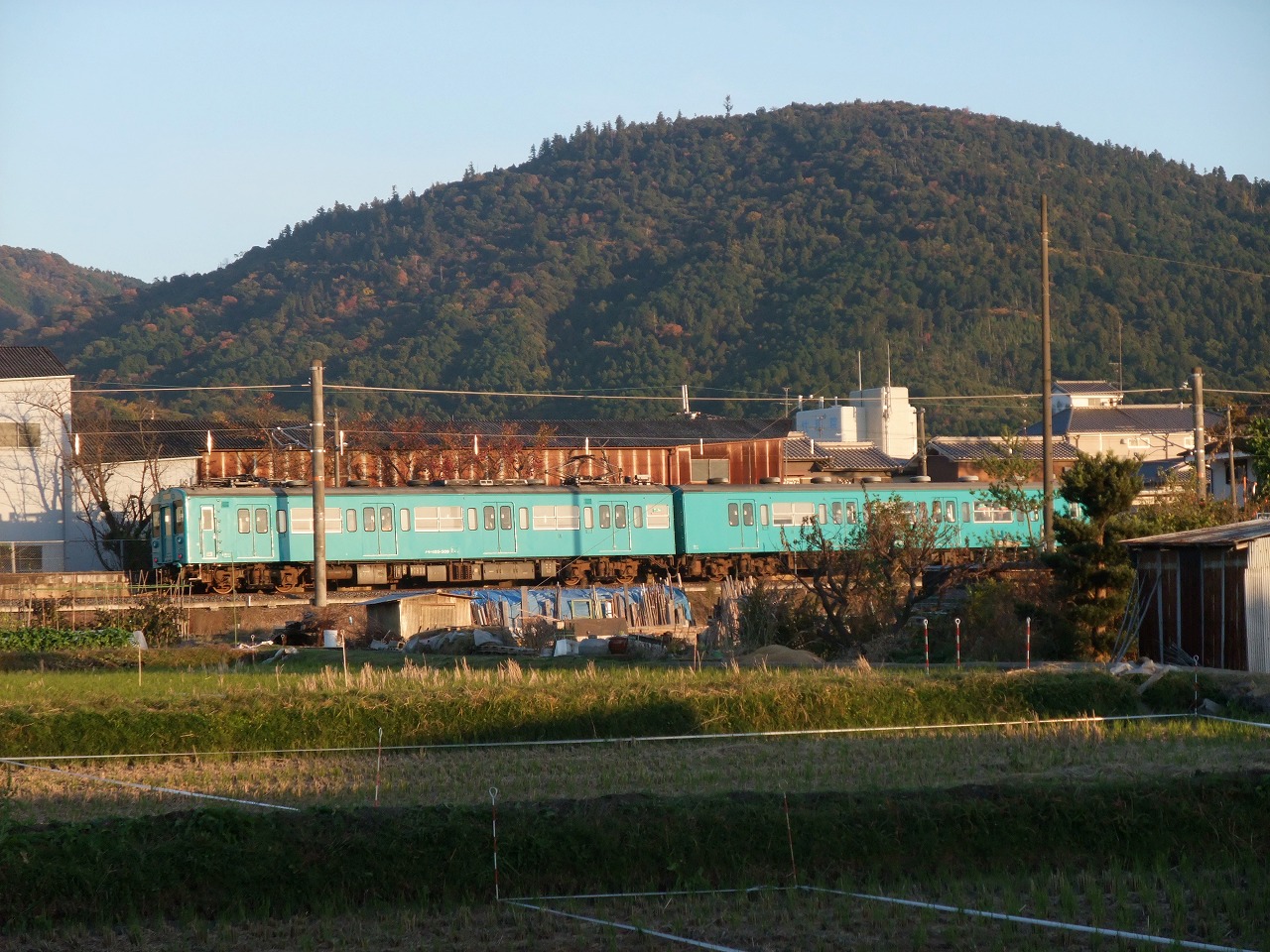写真には、三輪山、巻向(まきむく)駅、そして発掘調査が行われている田んぼを収めている。この写真の左方は2009年に「卑弥呼の宮殿跡か」と話題になった大型の高床式建物跡が見つかった場所だ。