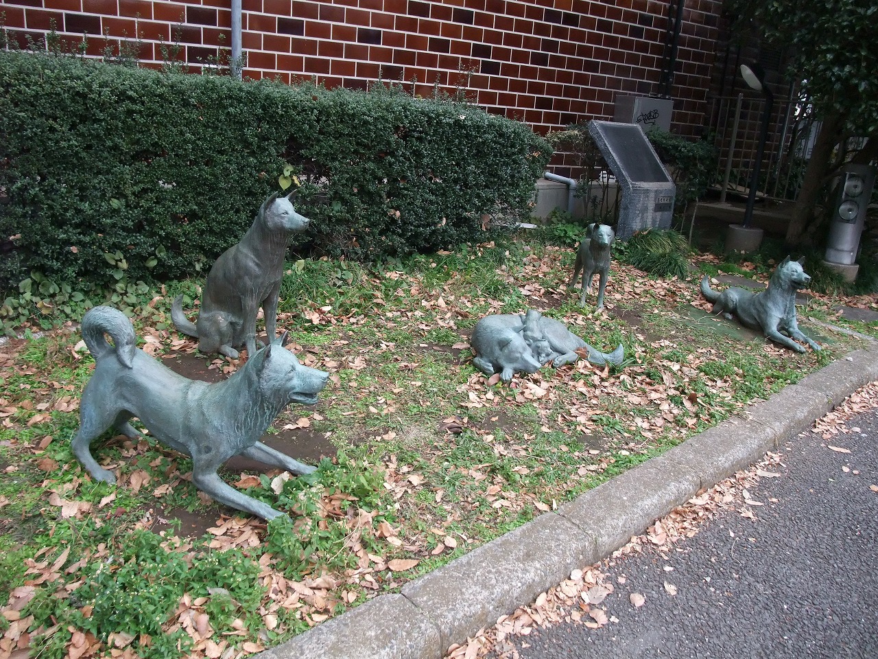 モニュメントとはいえ、動くかのような犬がこうも並んでいると、動物の苦手な私はひるんでしまう。区役所の玄関脇には中野区教育委員会の説明板があるので読んでみた。