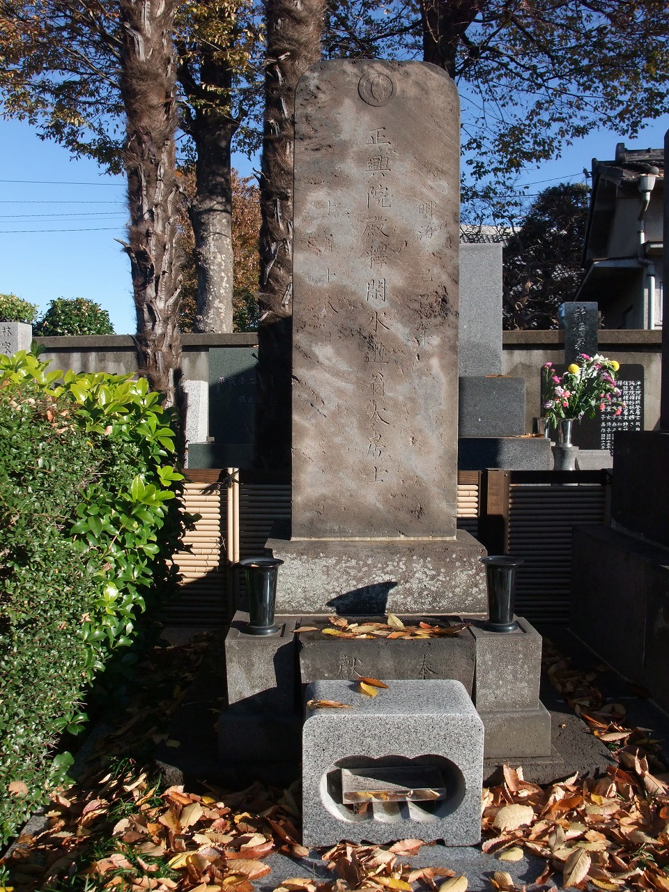 明治二年、四十八歳で病没し、牛込原町(新宿区)に葬られましたが、その墓は大正の初め寺とともに現在地に移転しました。