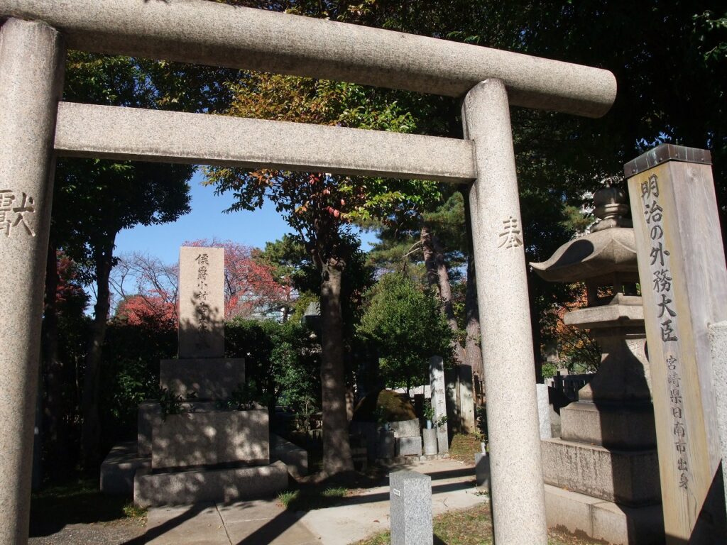 港区南青山2丁目の青山霊園に「侯爵小村寿太郎墓」がある。明治の外務大臣、宮崎県日南市出身と分かりやすく表示されている。飫肥(おび)藩の下級藩士の出身で、米国のハーバード大学へ留学した秀才である。