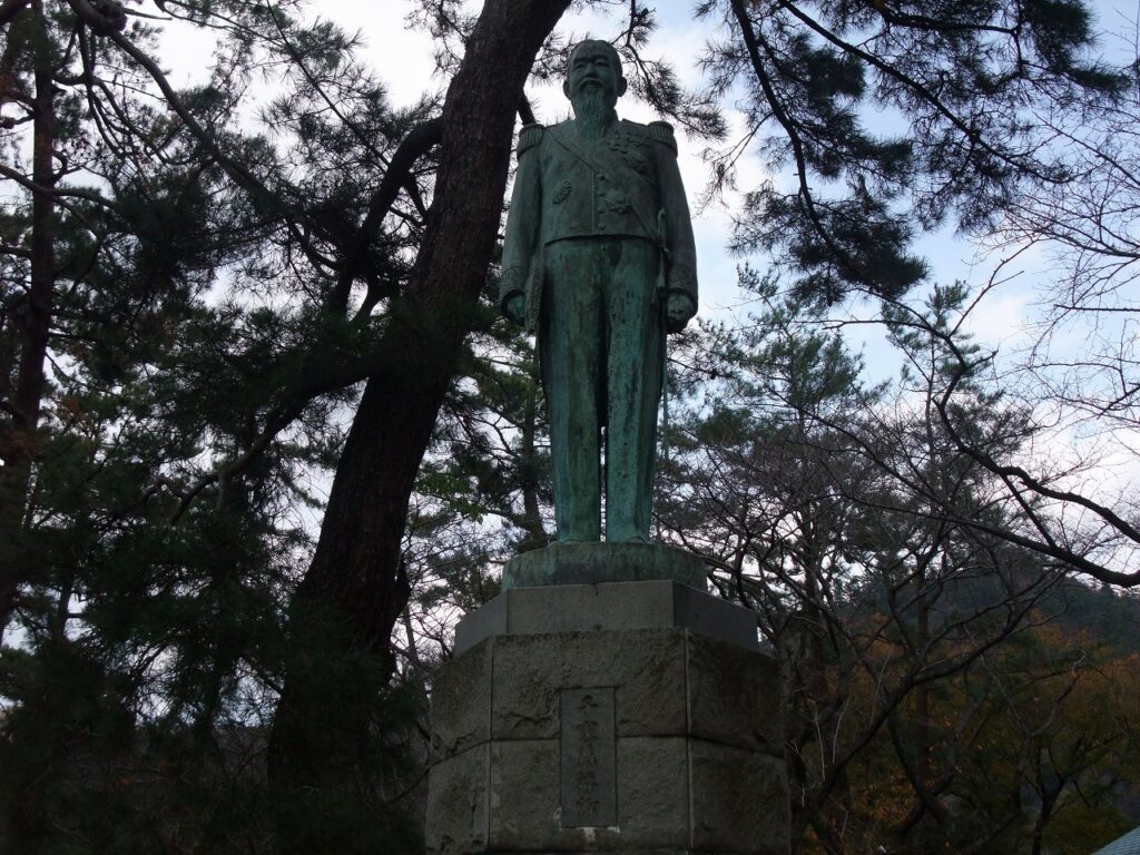 出雲市大社町杵築東の出雲大社参道脇に「千家尊福(せんげたかとみ)卿」の銅像がある。