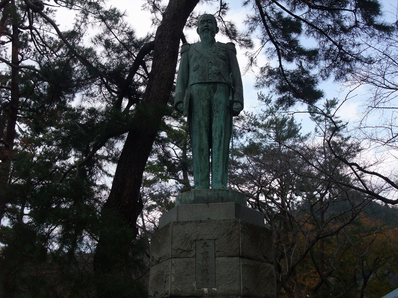 尊福卿は尊祐氏の曽祖父の兄にあたり、第80代出雲国造である。宮司さんではあるが、大礼服を着ていらっしゃる。いったいどのようなお方なのか。台座の銘文を読んでみよう。