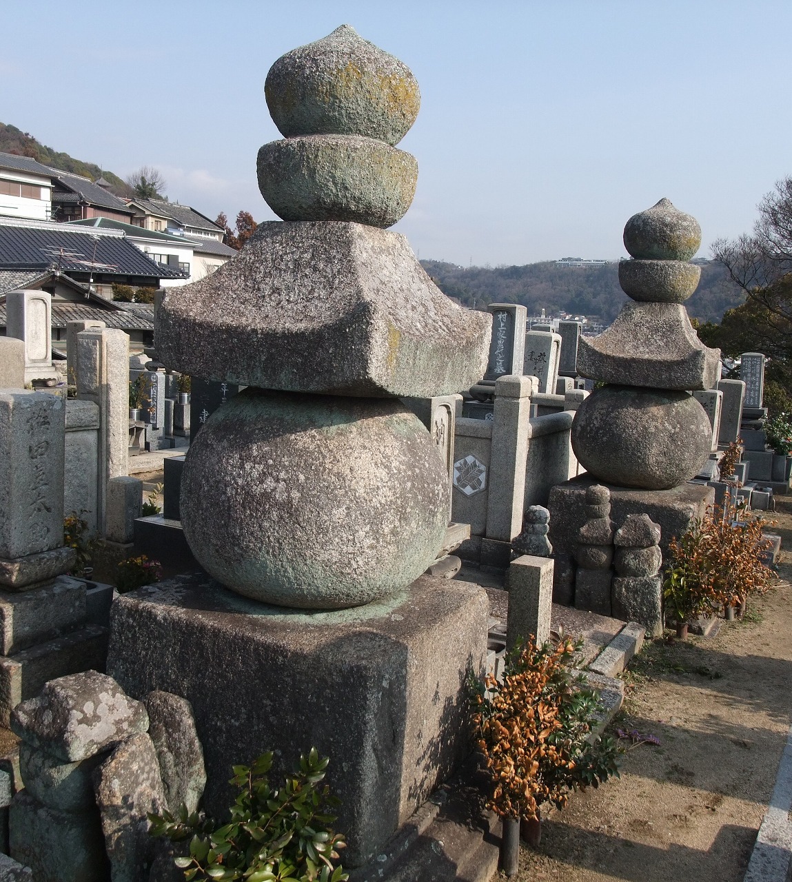 尾道市長江一丁目の福善寺の裏山に尾道市指定文化財の「石造五輪塔」がある。