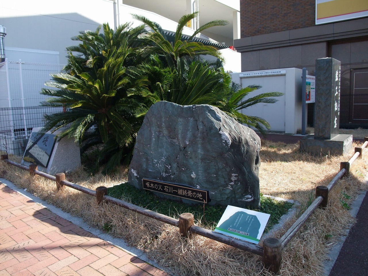 高知市北本町二丁目の高知駅前に「啄木の父石川一禎(いってい)終焉の地」として父子の歌碑が建立されている。