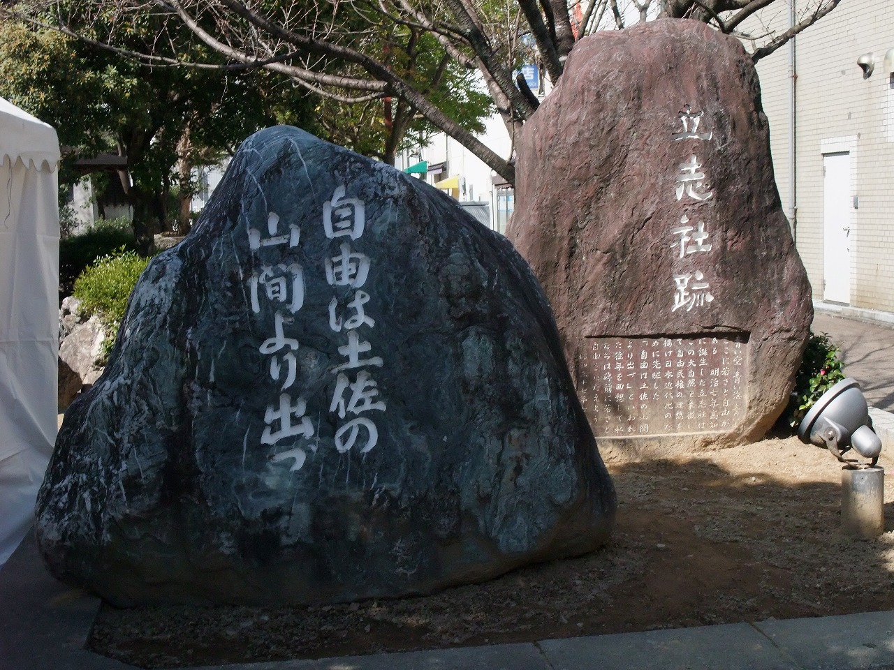 高知市帯屋町一丁目に「立志社跡」がある。隣接して「自由は土佐の山間より出づ」との石碑がある。