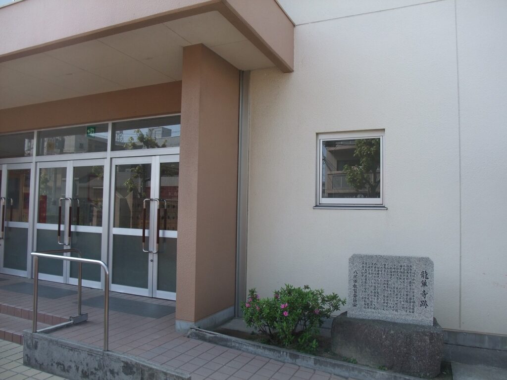 八尾市陽光園二丁目の市立安中(やすなか)小学校に「龍華寺跡」の石碑がある。