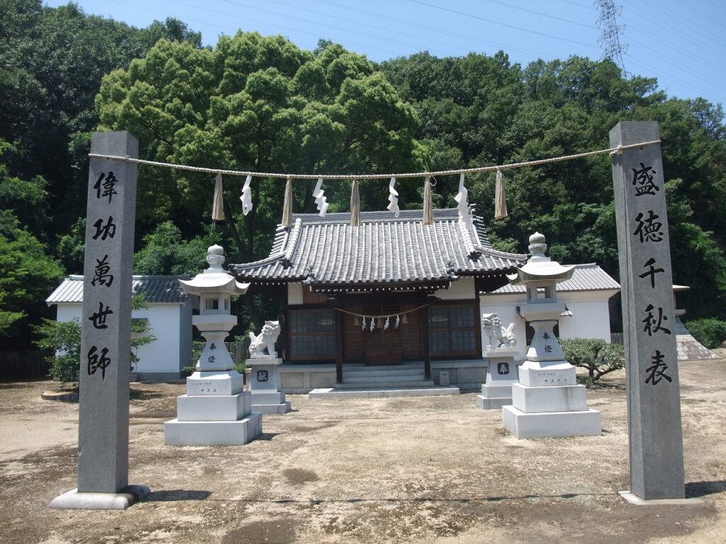 祭神久米通賢命は東讃馬宿の人、時勢を考察國利民福を念願し、必死の覚悟で高松藩に坂出墾田を建白、私財・借財と全智を傾けて、文政十二年に二百数十町歩の坂出墾田を完成、殊に百十五町歩の久米式塩田から製する塩は、坂出の特産となって村と藩を富まして日本一の製塩地坂出の基となった。