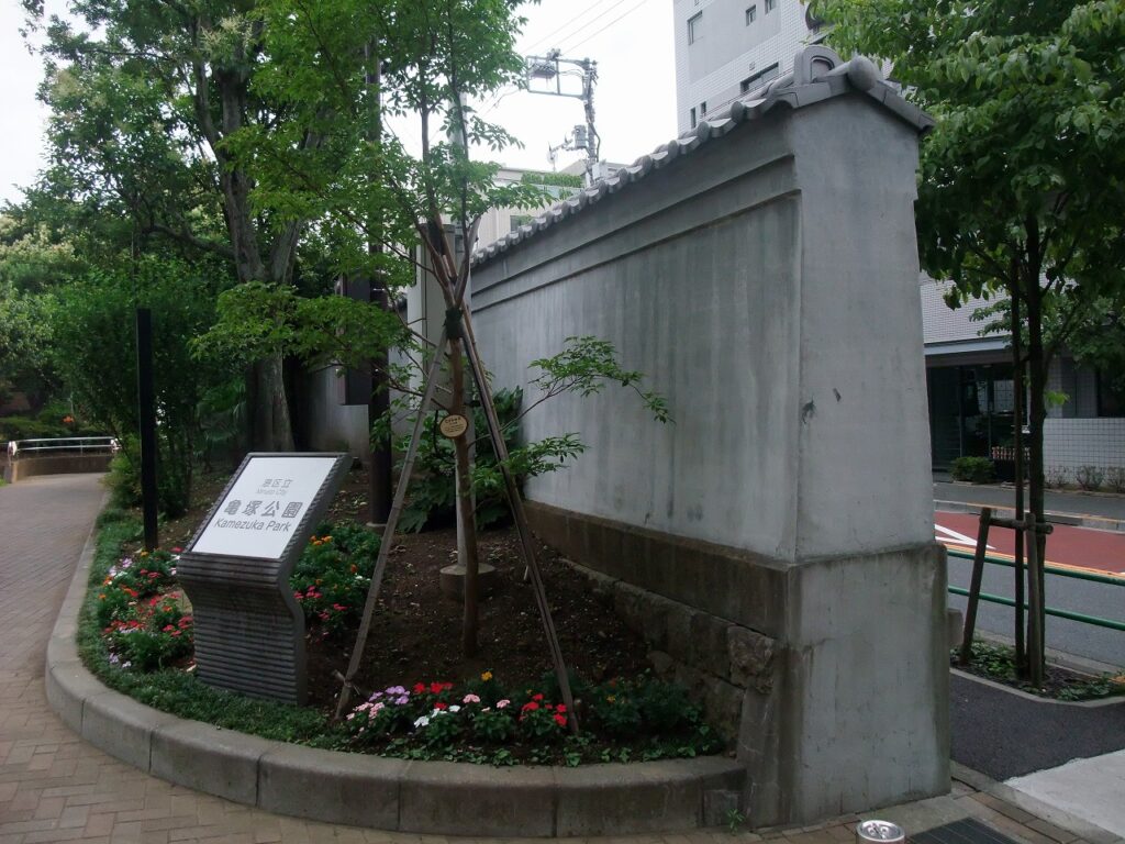 姫と男が暮らす屋敷は皇居のようにリフォームされたという。ここ亀塚公園も皇居と無縁ではない。写真のような塀は普通の公園にはない。それもそのはず、ここは華頂宮(かちょうのみや)邸として、大正13年に同宮家が断絶するまで皇族がお住まいになっていたのだ。塀はその名残だということだ。