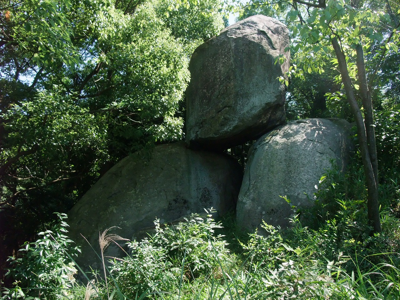 香川県綾歌郡宇多津町大門に「三ツ岩(細川義阿の墓)」がある。不思議な巨石だ。人工物のようであり、ゆるぎ岩の例もあるから自然物のようにも思える。