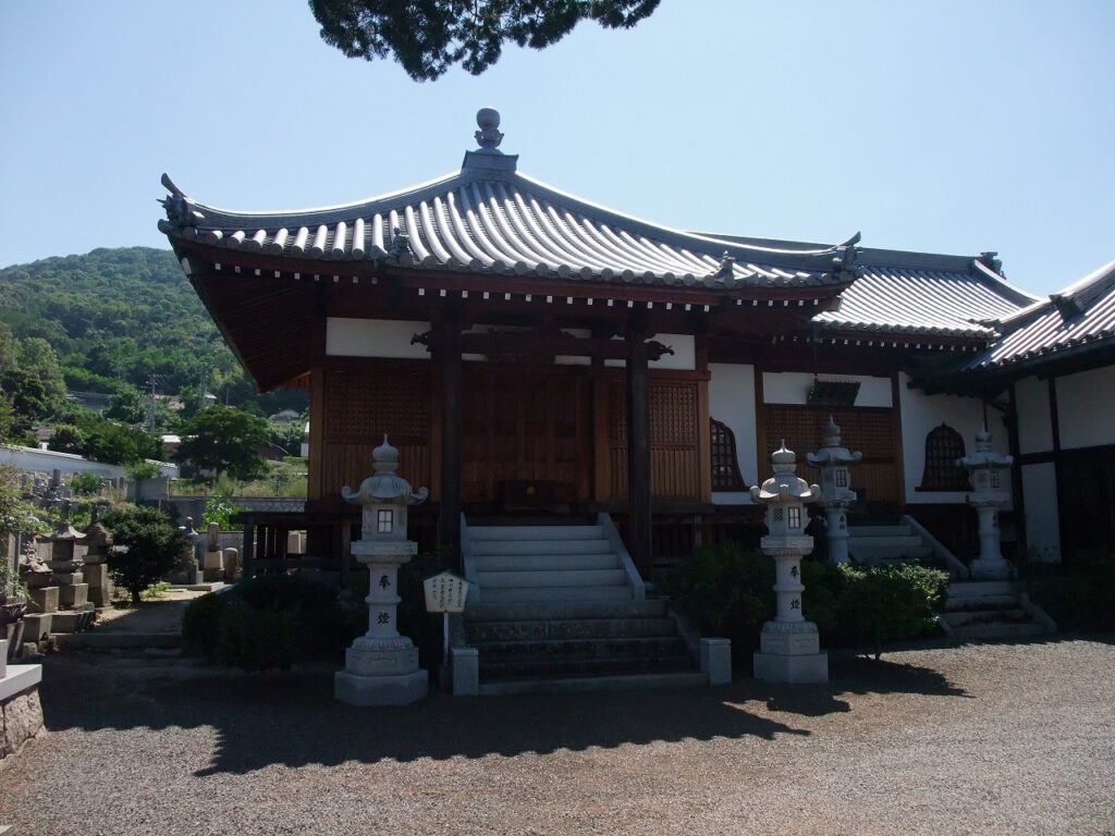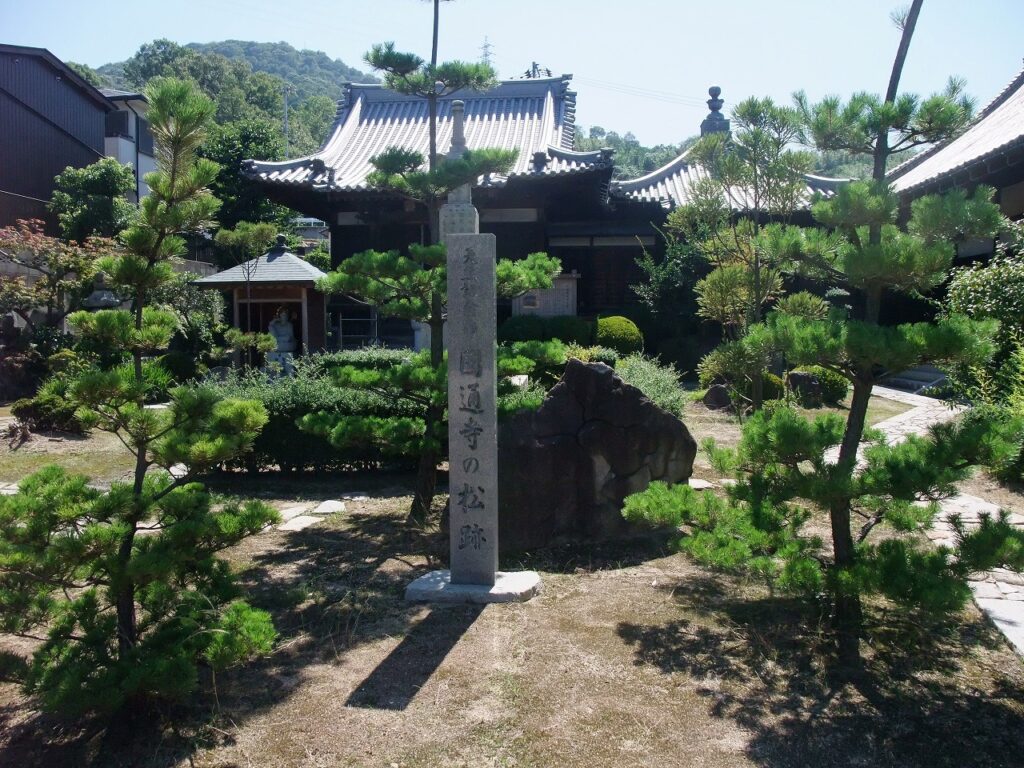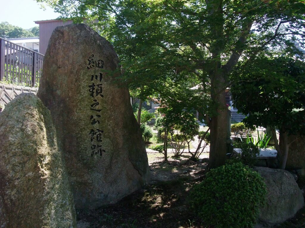 さて、多聞寺の隣に青松山観音院圓通寺(せいしょうざんかんおんいんえんつうじ)があり、境内に「細川頼之公館跡」の石碑がある。所在地は宇多津町1263である。多聞寺の説明板が語るように、多聞寺も圓通寺も室町幕府の管領細川頼之公の館跡である。