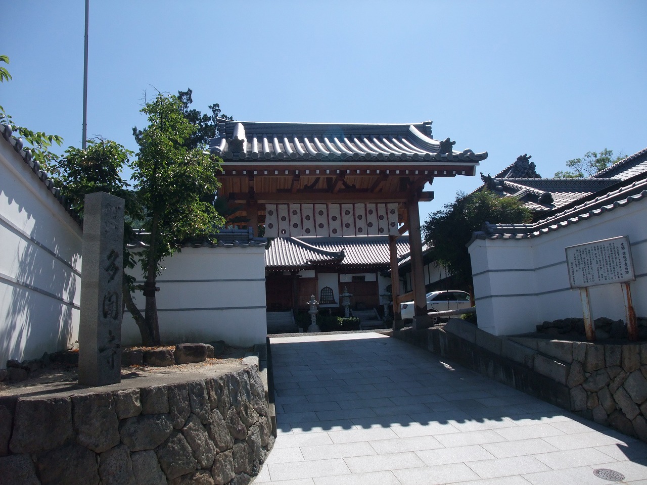 香川県綾歌郡宇多津町1269の寳塔山多聞寺(ぜんにちざんたもんじ)の山門前に、「史跡 讃岐守護所跡」の説明板がある。