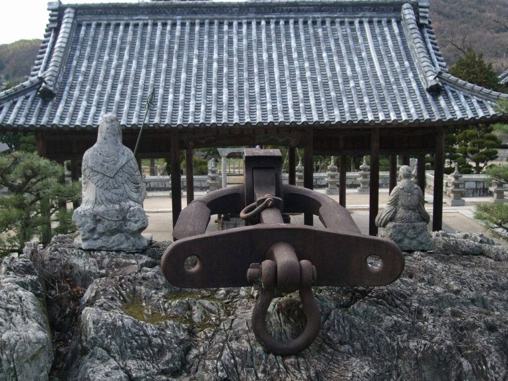 岡山市北区吉備津の宗教法人福田海(ふくでんかい)の境内に「鎮遠の錨(いかり)」が祀られている。錨だけに不動尊である。