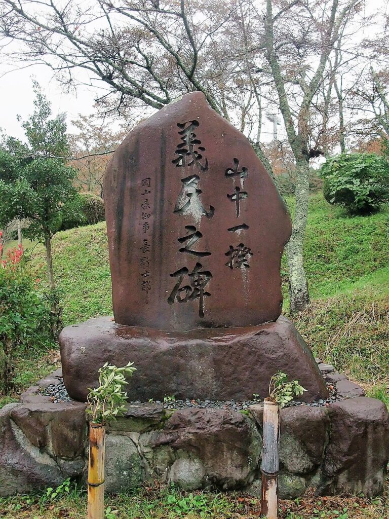 真庭市禾津(いなつ)の「義民の丘」という公園に「山中一揆義民の碑」が建てられている。昭和57年の建立で、揮毫は当時の岡山県知事長野四郎氏である。