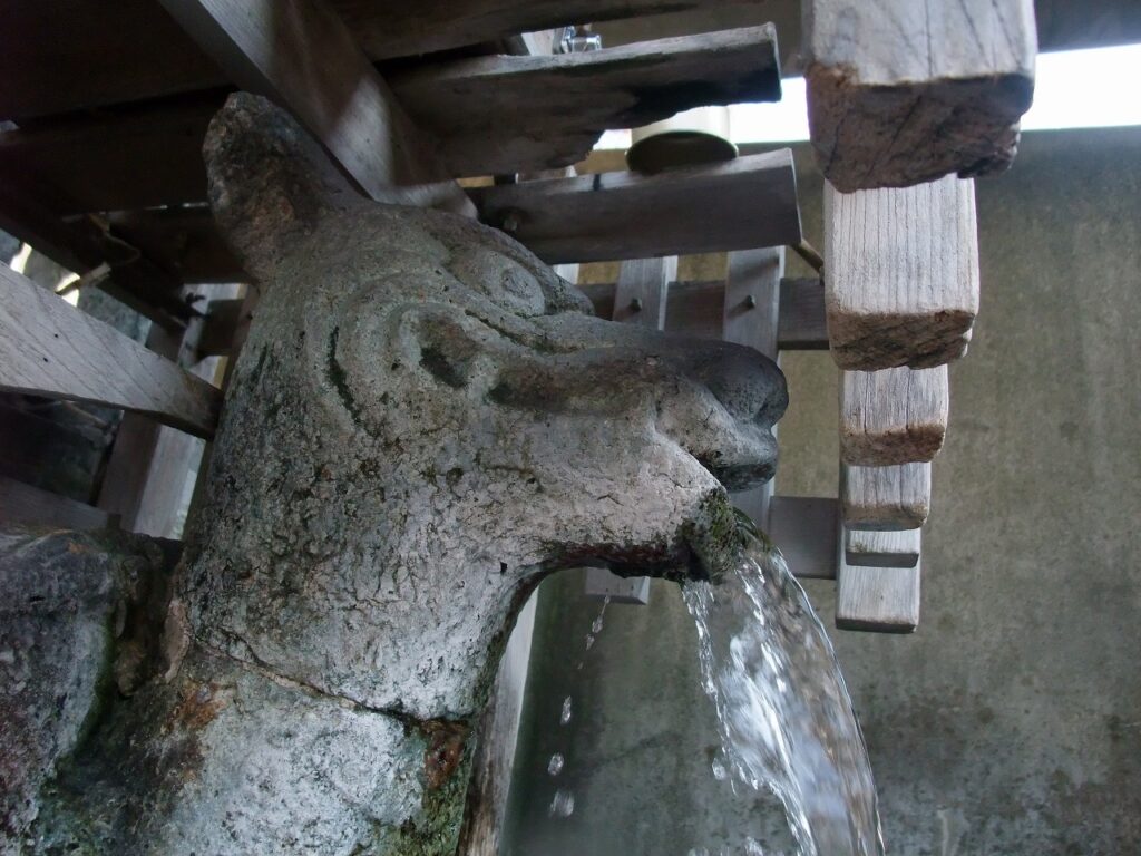 明石市人丸町に名水「亀の水」がある。オオカミの口から勢いよく水が出ている。いや失礼、カメの口からでした。写真では写せてないが甲羅があるのだ。ただし、正確には「贔屓(ひいき)」という伝説上の動物ということだ。