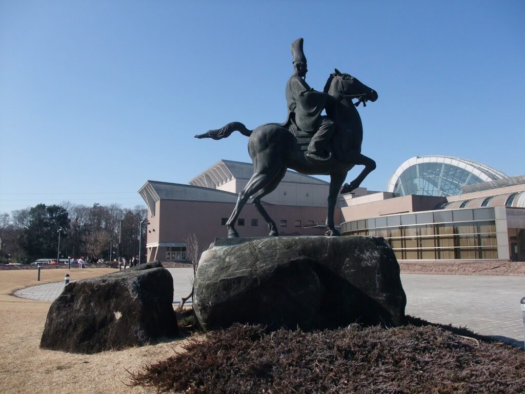 坂東市岩井の総合文化ホール「ベルフォーレ」前に「平将門公之像」がある。平成6年、茨城県出身の一色邦彦氏の制作である。