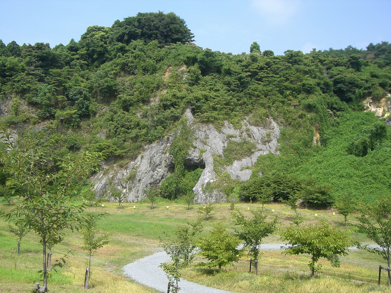 昭和35年頃、岩水寺(がんすいじ)の西側では石灰岩の採掘中にトラ・ヒョウ・シカなどの化石獣骨が出土しました。昭和37年・38年に東京大学理学部人類学教室の鈴木尚名誉教授らによって行われた発掘調査で化石人骨が発見され、日本における更新世人類の存在を示す貴重な遺跡であることがわかりました。