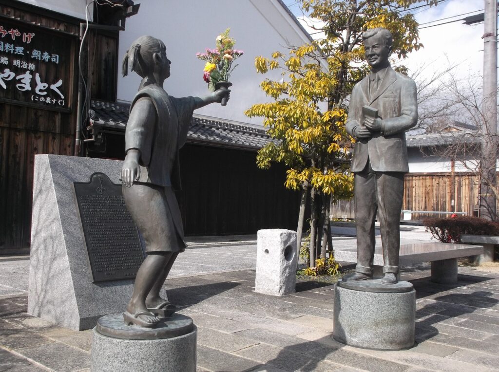 近江八幡市魚屋町元(うわいちょうもと)に「ヴォーリズ像」がある。分かっていると思うが、右の人物がヴォーリズである。