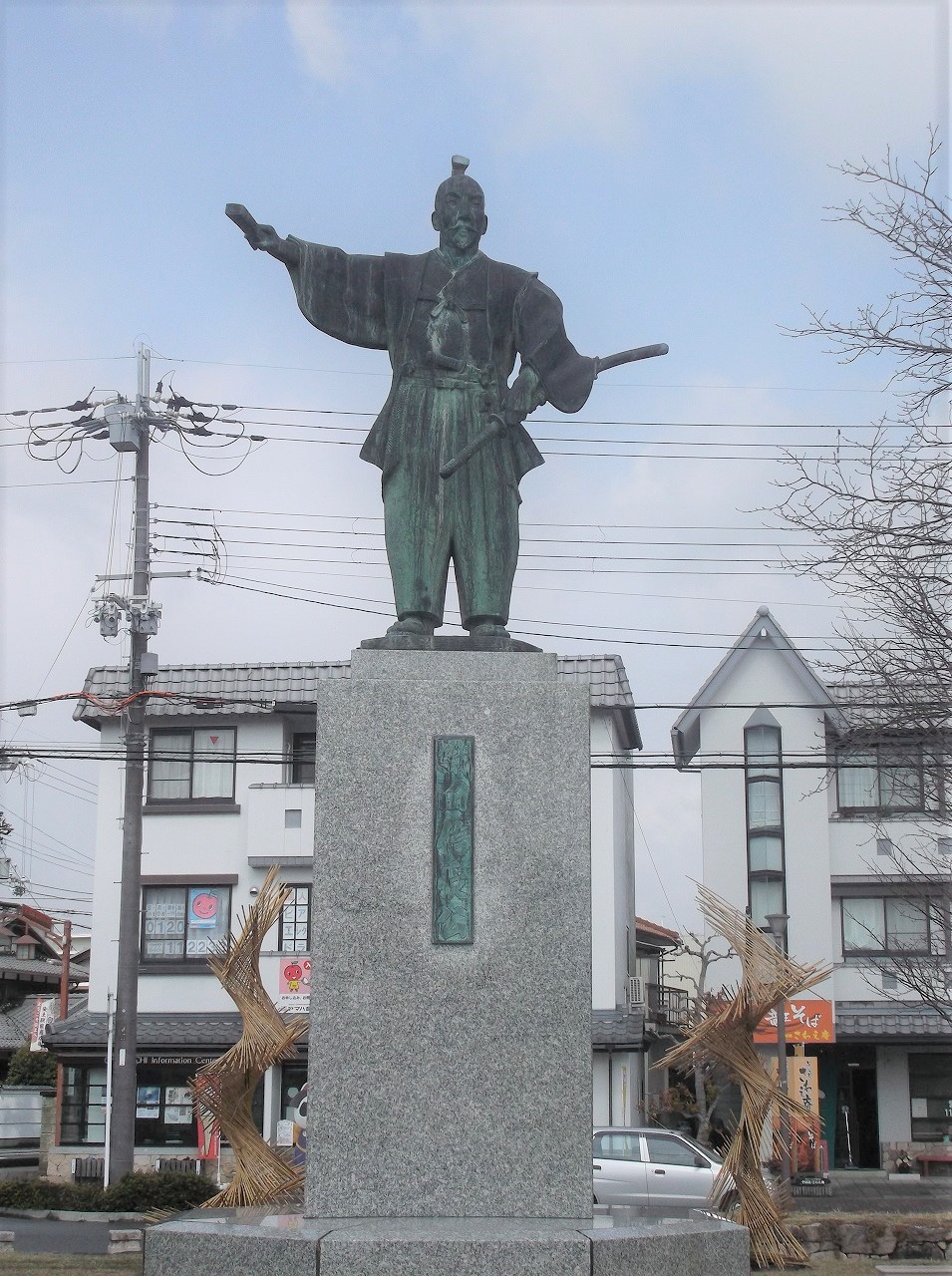 近江八幡市安土町上豊浦の安土駅前に「織田信長公」の銅像がある。