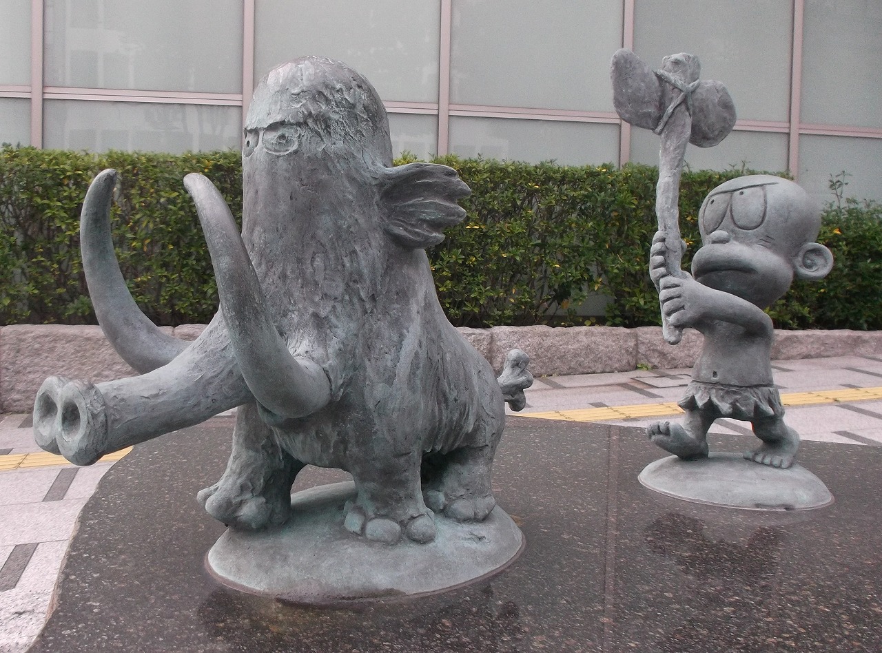 松江市朝日町の松江テルサ前に「ブロンズ像 はじめ人間ギャートルズ」がある。