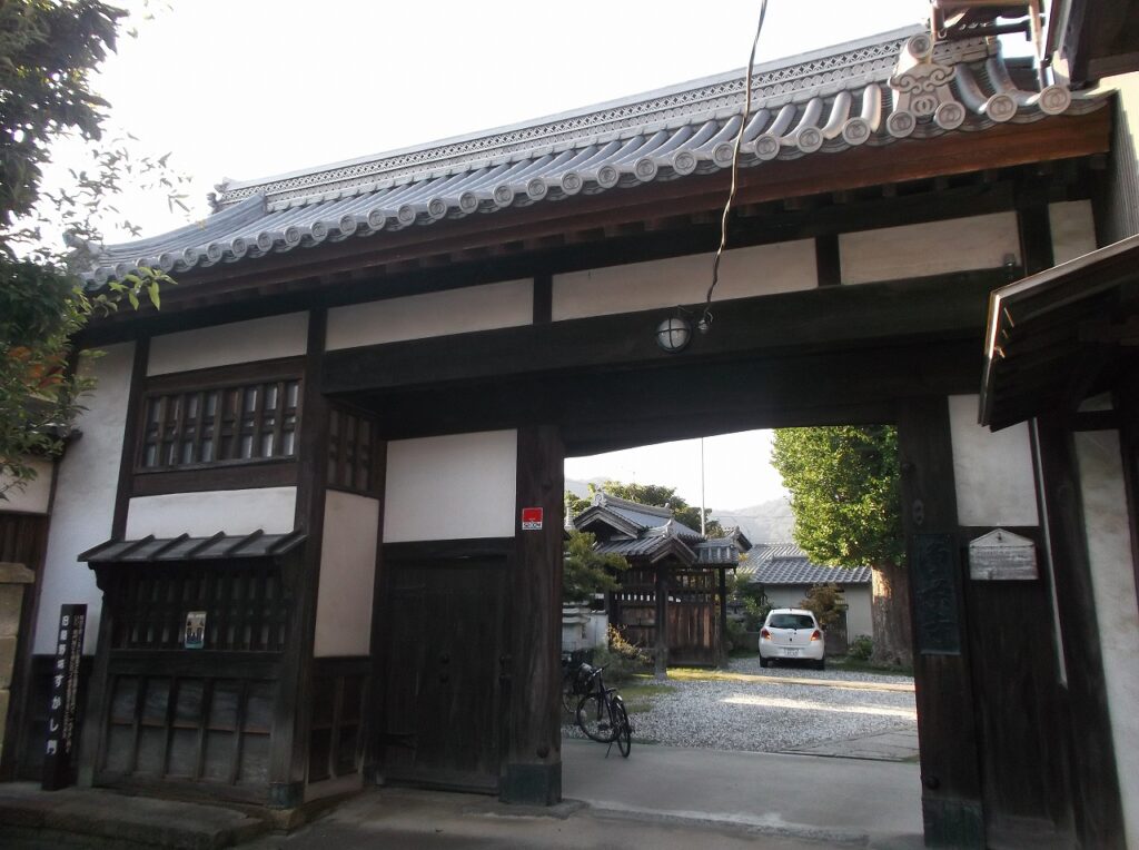 一八七九年(明治十二)八月に、龍野城の大手門を移築したもの。鬼瓦などに藩主脇坂侯の家紋「輪違い」が入っている。龍野城の遺構をいまに伝える建築物である。