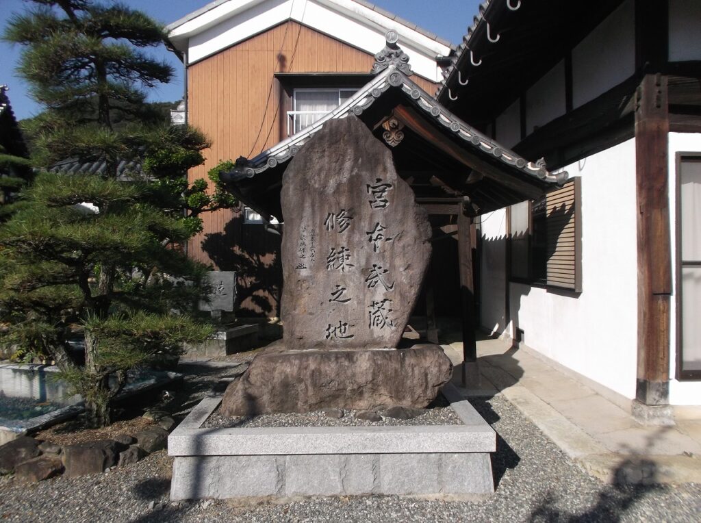 たつの市龍野町下川原の龍野御坊(たつのごぼう)圓光寺(えんこうじ)に「宮本武蔵修練之地」の碑がある。揮毫は龍野藩主家15代目で元子爵の脇坂研之氏である。