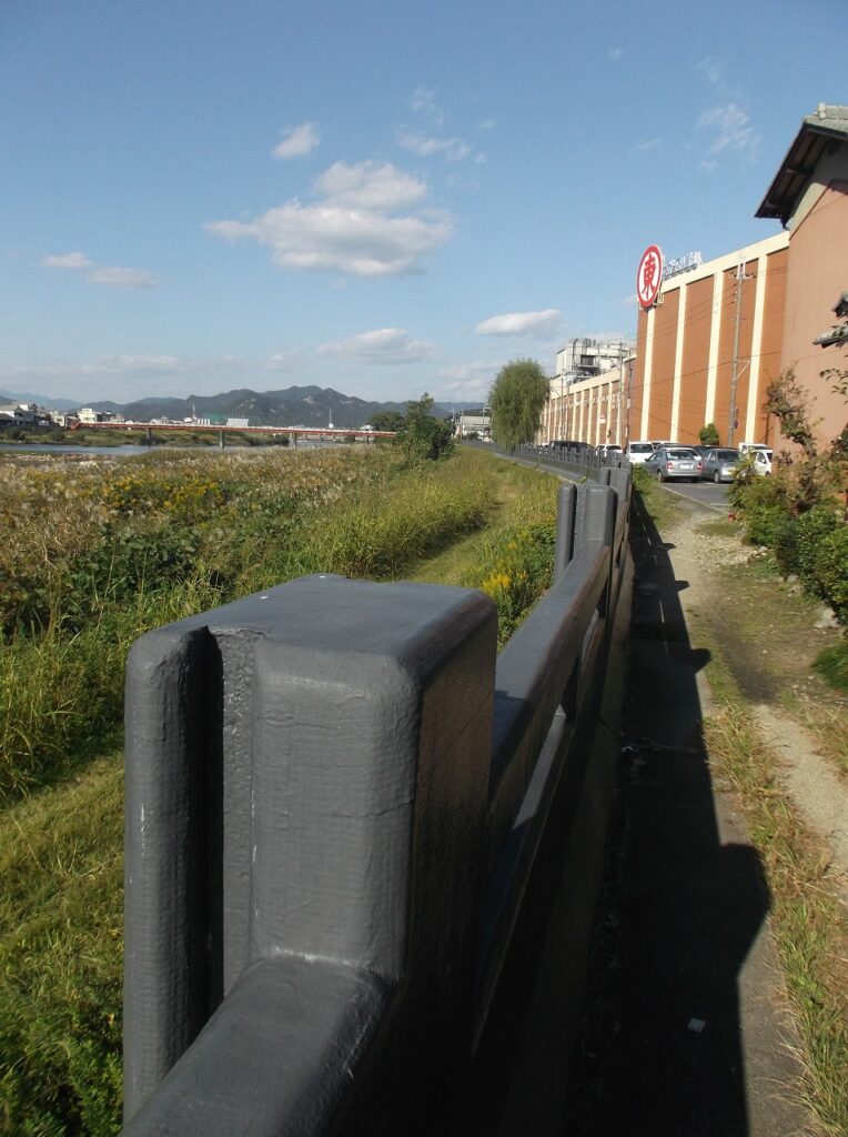 どこが堤防ですか?橋の欄干ではないのですか? いや、これが特殊堤「畳堤」なのだ。その名のとおり、いざという時には畳をはめ込んで壁を造り、堤防とするのである。だから、畳の厚さくらいの溝が作られている。