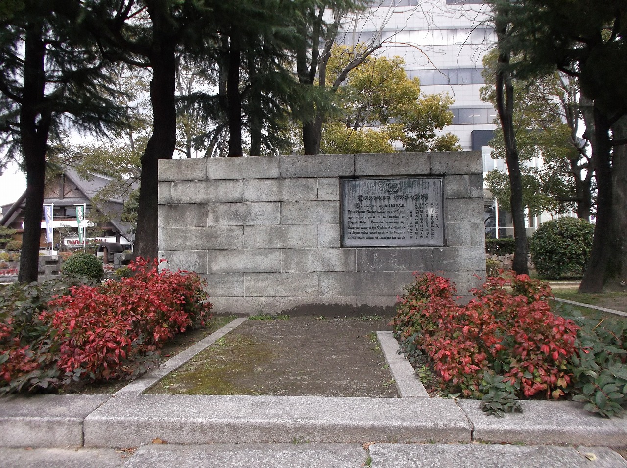 On a certain day in 1550A.D. Saint Francis Xavier landed here at Sakai and became a guest in the mansion of Ryokei Hibiya.From this memorable day dates the advent of the Occidental civilization in Japan,which added much to the fragrance of the modern culture of Japan and her people.