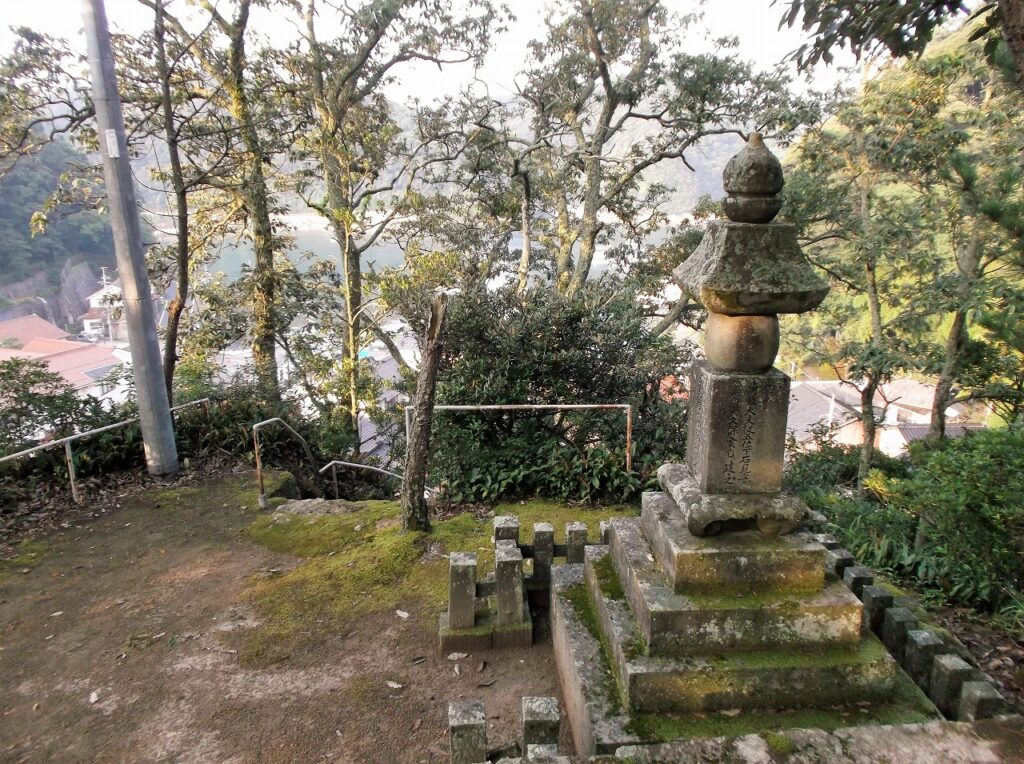 「朝散大夫」とは従五位下の唐名、「自建之」とあるように生前に建てられたものである。それにしては風化が進んでおらず新しい感じがする。それもそのはず、昭和51年に温泉津町観光協会によって再建されたものだという。