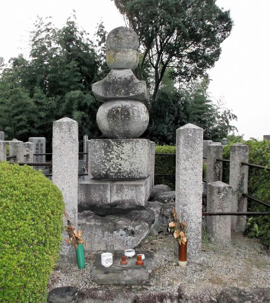下の写真が「身方塚」で、大阪府古文化紀念物等保存顕彰規則により「森屋惣墓身方塚石造五輪塔」として重要美術品に指定されている。総高137.3cmである。