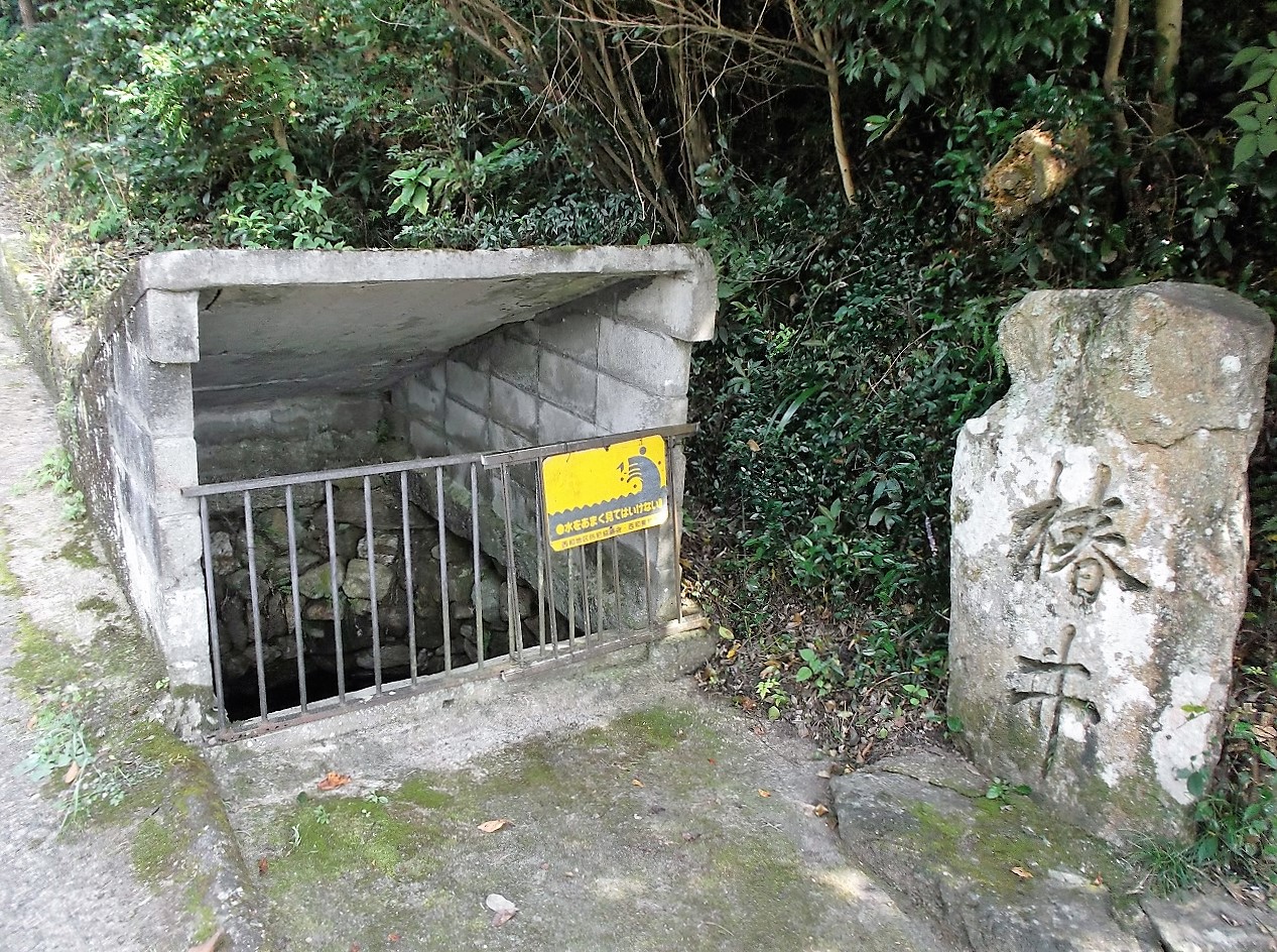 これは由緒ある井戸である。弘法大師が杖を突いたら水が湧き出たという話とよく似ているが、ここでは地元の豪族、平群神手将軍が起こした奇跡である。有名な平群真鳥(へぐりのまとり)から数えて6代目の子孫である。