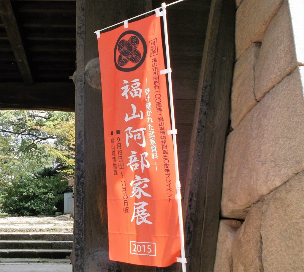 元和八年(1622)に福山城は完成するが、この時の城主は水野勝成公である。今秋には公にちなんだ特別展が、福山城博物館で開催されるそうだ。ここを訪ねた昨秋には、ちょうど「福山阿部家展」をやっていた。幕末の名老中、阿部正弘公を輩出した譜代大名である。