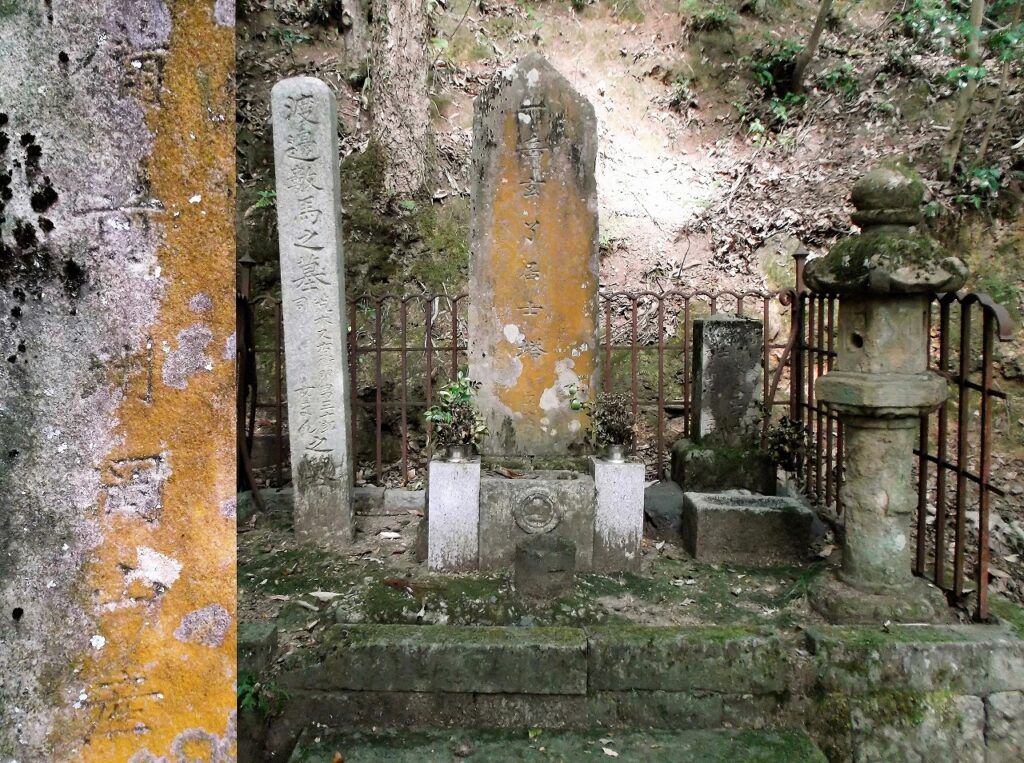 鳥取市栗谷町の興禅寺に「渡辺数馬の墓」がある。歳月を経て変色した墓碑をよく見ると「備前州岡山産」とある。右側の小さな墓は、又右衛門の息子三十郎と娘まんの墓である。