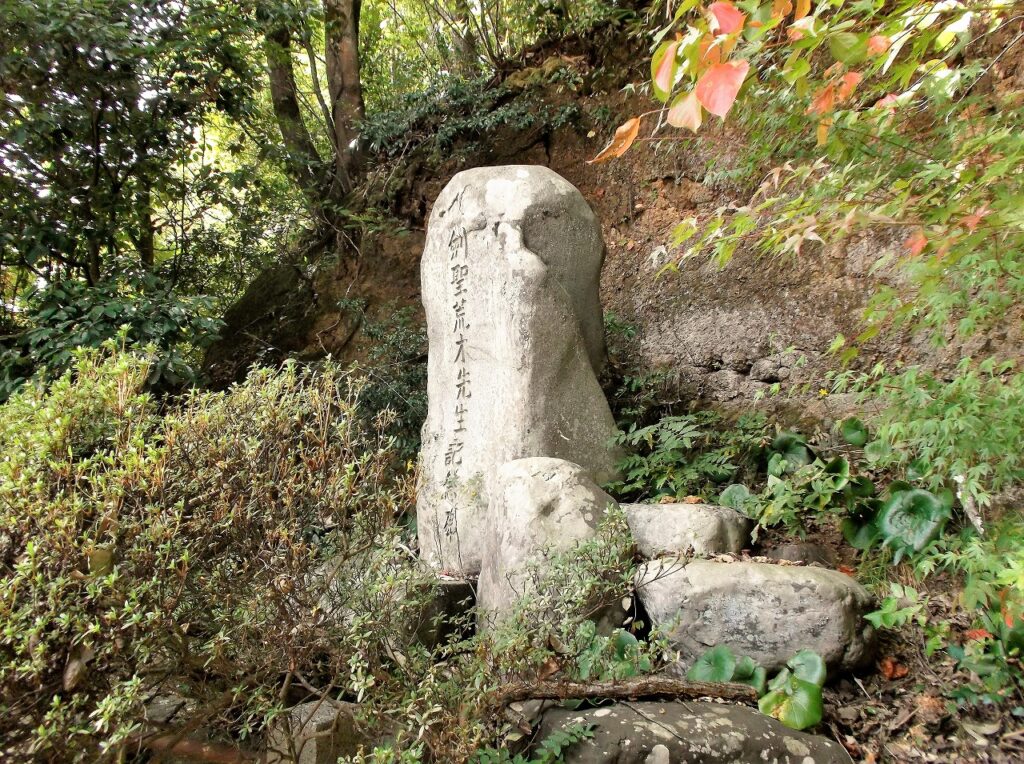 再び興禅寺に戻ろう。渡辺数馬の墓の手前に「剣聖荒木先生記念碑」がある。昭和7年の建立で、揮毫は海軍大将斎藤実、五・一五事件後に首相となり二・二六事件で暗殺された人物である。碑を建てたのは鳥取の武芸家、松田秀彦である。松田はその昔、大久保利通暗殺計画に関与したことがある。たった一つの石碑に、日本史が凝縮している。