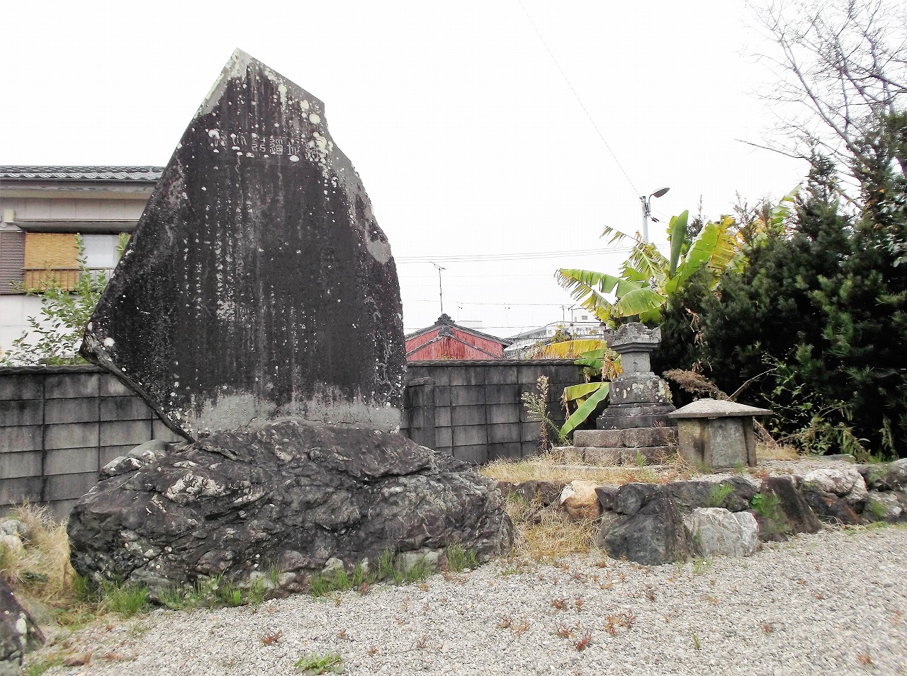 写真左は「結城道忠之碑」といい、大正六年(1917)に建てられた。「道忠」は結城宗広の法名である。黒ずんで読みづらくなっているが、重野安繹(しげのやすつぐ)の撰文である。重野は実証主義史学の大家として知られる人物である。