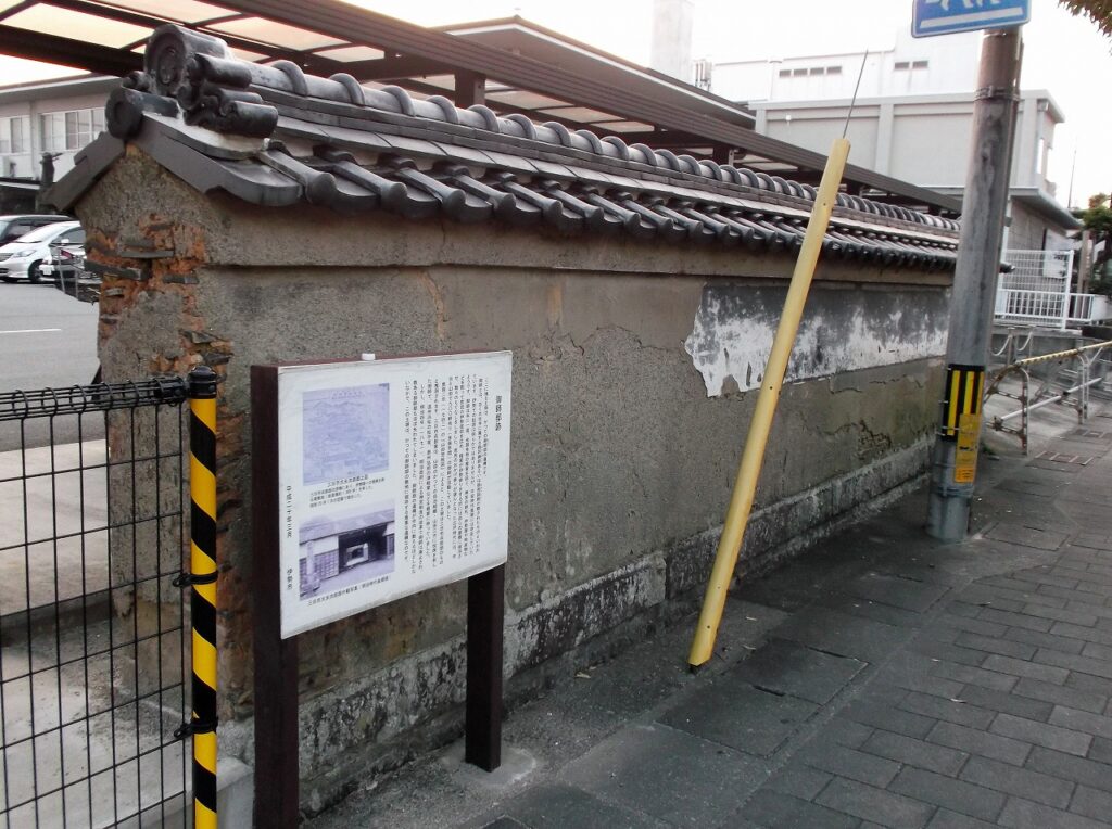 寛保二年(一七四二)の『山田惣絵図』によると、この土塀は三日市兵部邸のものと推測されます。三日市兵部家は、山田のかつての自治組織・山田三方に役席を有した御師で、遠州浜松の松平家、奥州弘前の津軽家などを檀家に持っていました。