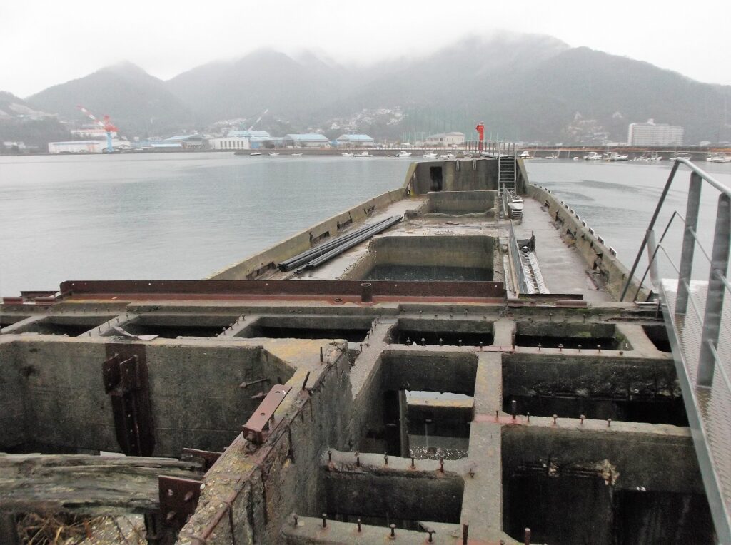 話がそれていきそうだが、その泥船である。コンクリートは固まる前にドロドロの状態だ。これを固めて造ったという船は、イメージがどこか泥船と重なる。だが心配することはない。事実、70年以上、輸送船そして防波堤として活躍しているではないか。