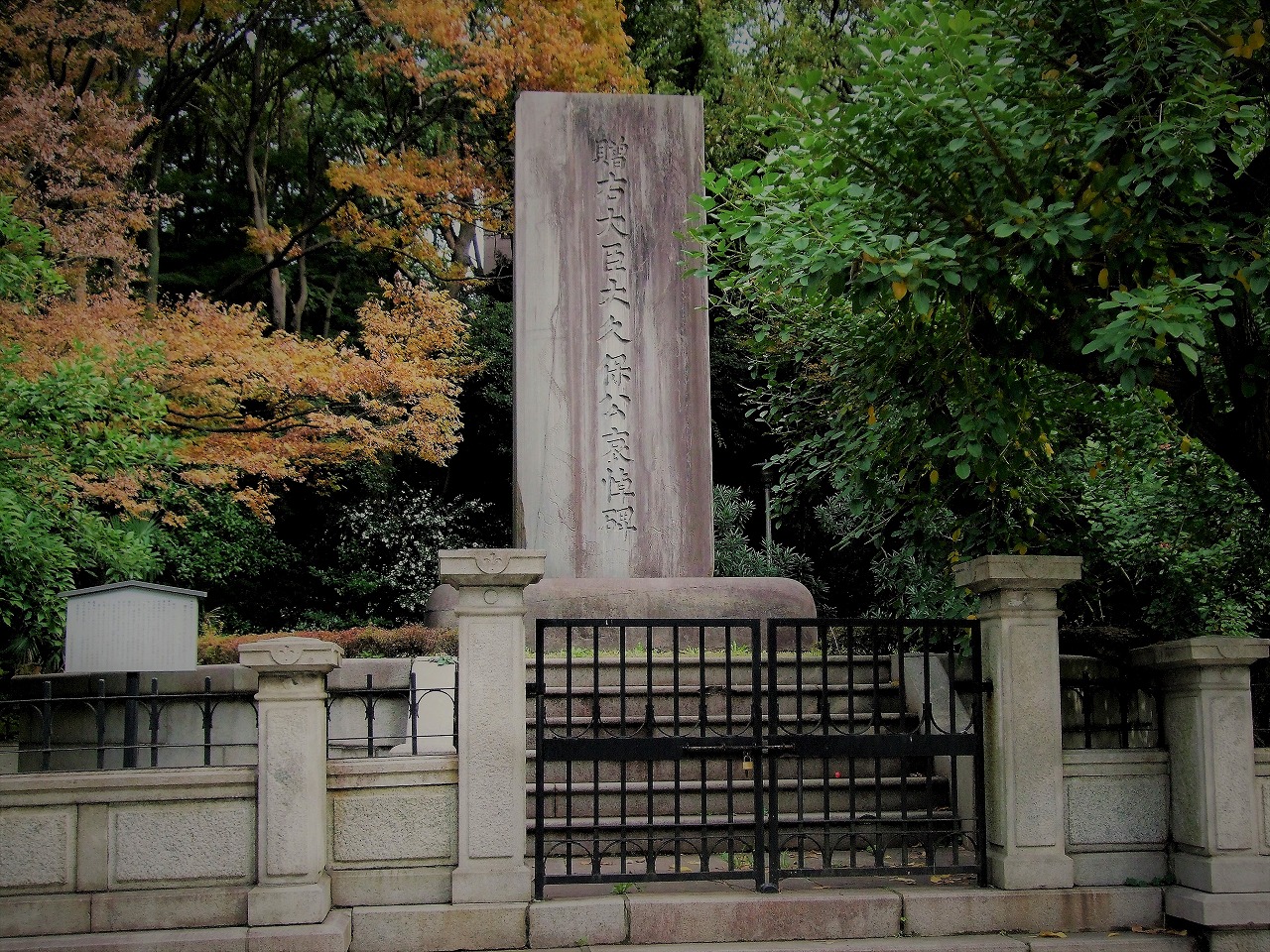 千代田区紀尾井町の清水谷公園に区指定有形文化財(歴史資料)の「贈右大臣大久保公哀悼碑」がある。暗殺から10年後の明治21年に建てられた。右大臣は死後に贈られた官職で、亡くなる前は内務卿として今の首相のような役割を果たしていた。