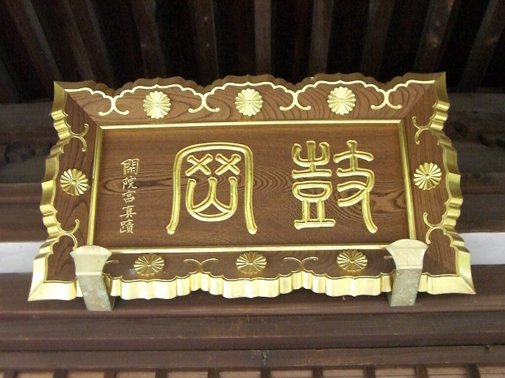 坂出市府中町に「鼓岡(つづみがおか)神社」がある。拝殿の扁額は閑院宮載仁親王の揮毫である。