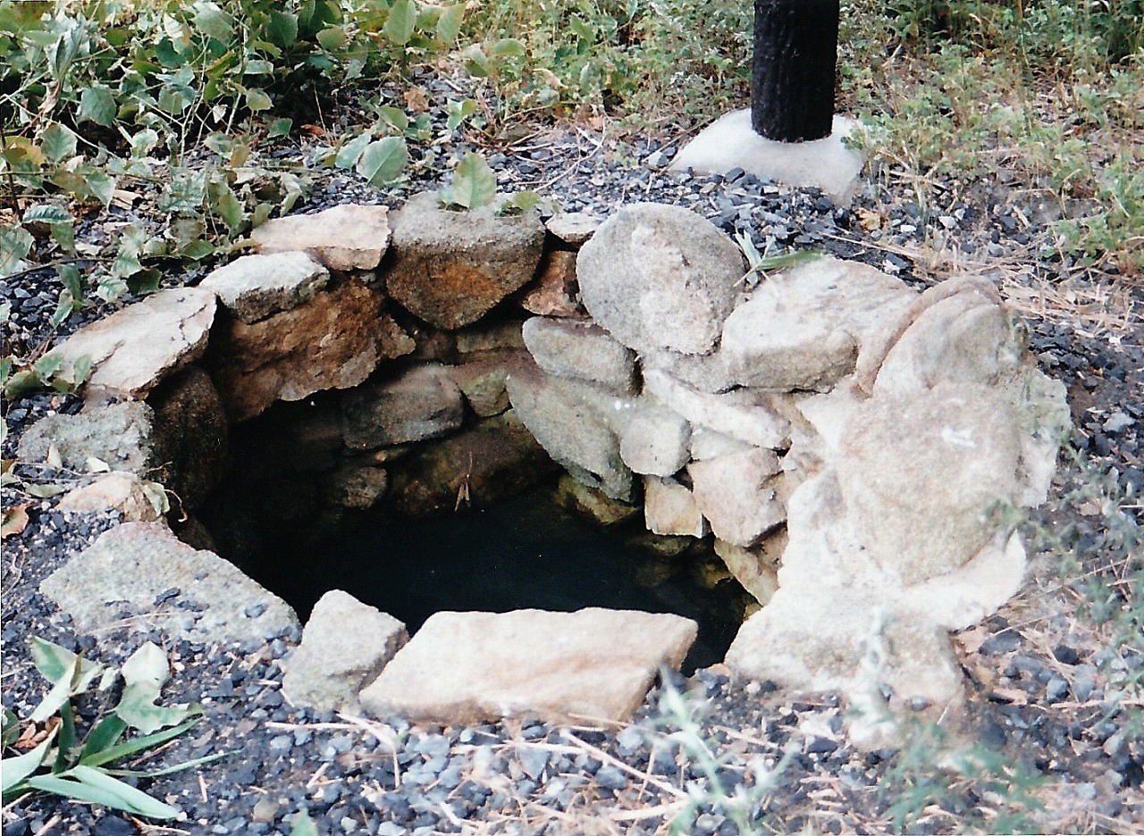 今を出る二千年の昔、神功皇后が三韓征伐の帰途、この島に軍船を泊めご休息のとき、この泉を発見され天神地祇を祀られたと伝えられる。出発のとき船の苫をこの井戸に蔽って立ち去られたので苫蔭の井戸と名づけられた。往時よりこの清水は涸れたことがない。当時は波打際にあったが海岸線が隆起して現在この地にあるが、由緒ある伝説の井戸である。
