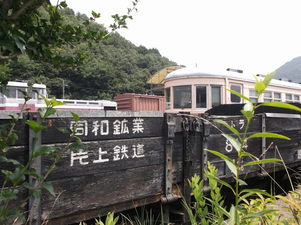 黄鉄鉱を運んでいた「トラ814」である。「ト」は無蓋(むがい)車で、鉱石など雨に濡れてもよいものを運ぶ貨車をいう。平成三年に柵原鉱山が閉山となると、同和鉱業片上鉄道も廃止された。