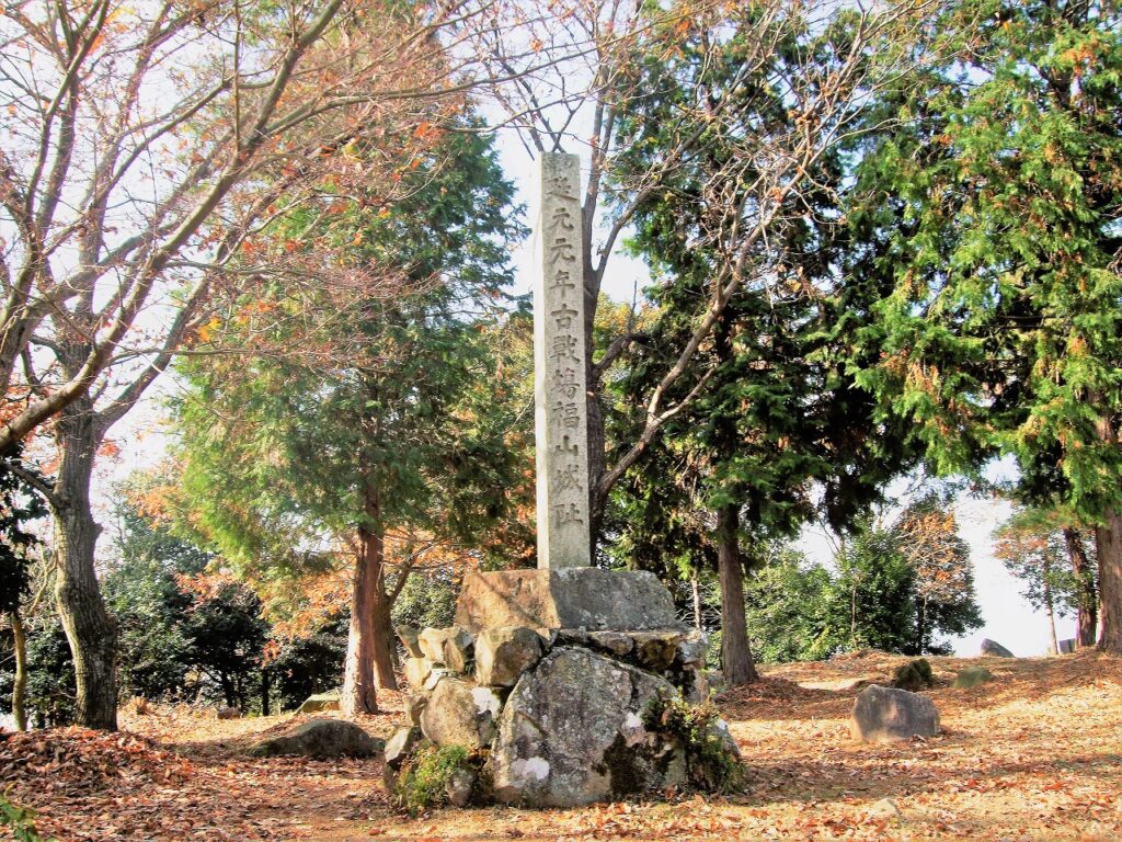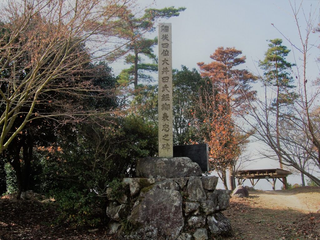 総社市西郡の国市指定史跡「福山城跡」に「延元元年古戦場福山城阯」「贈従四位大井田氏経卿表忠之碑」と刻まれた碑がある。