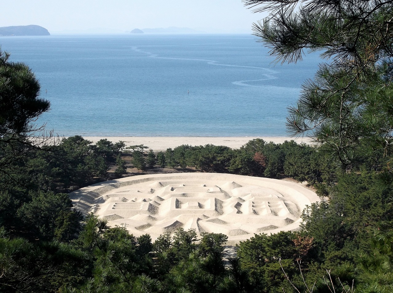 どちらの巨大アートも観光資源として地域おこしに一役買っている。本日紹介する巨大な砂絵も、観光客を呼び込むために最近できたのかと思ったら、そうではない。ナスカの地上絵には負けるが、日本最古にして最大の砂絵である。(諸説あります。)
