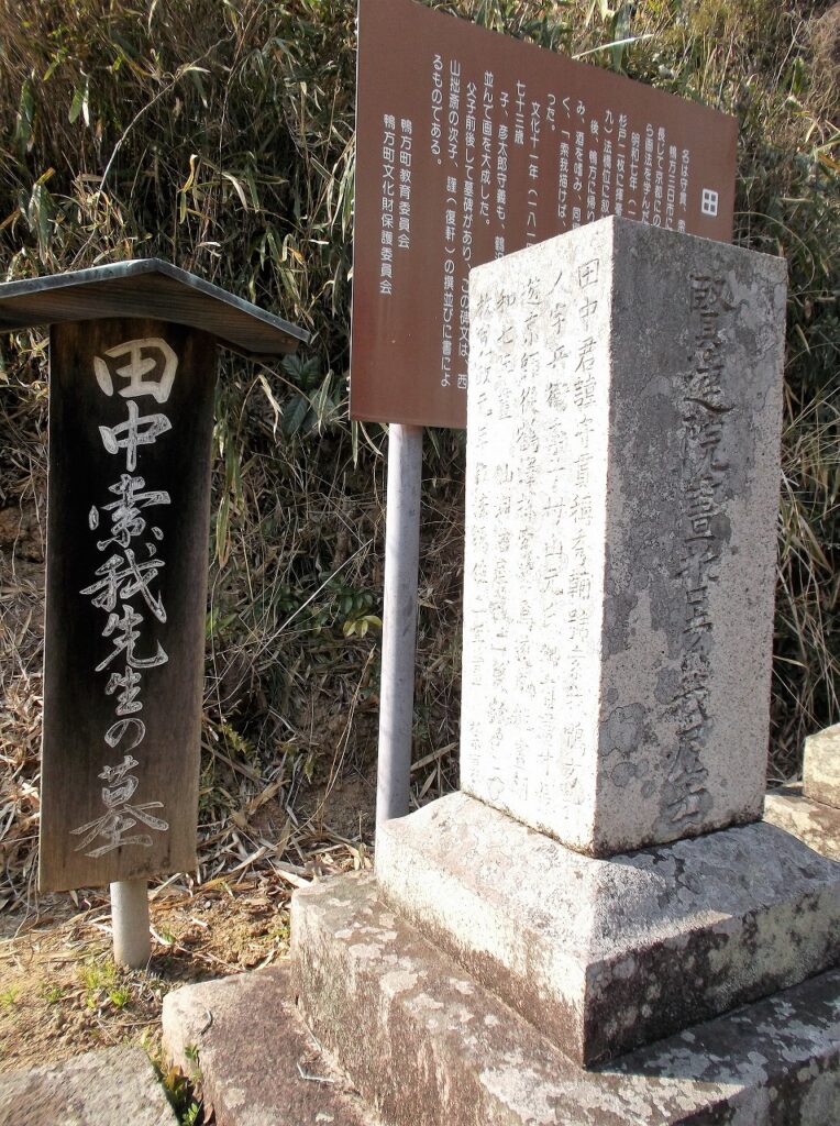 浅口市鴨方町鴨方、拙斎の墓とは神社を挟んで反対側に「田中索我の墓」がある。