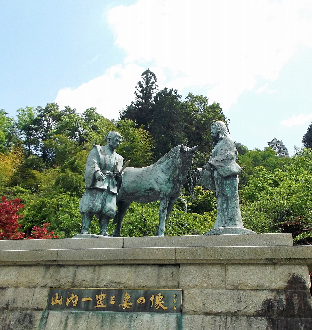郡上市八幡町柳町に「山内一豊と妻の像」がある。